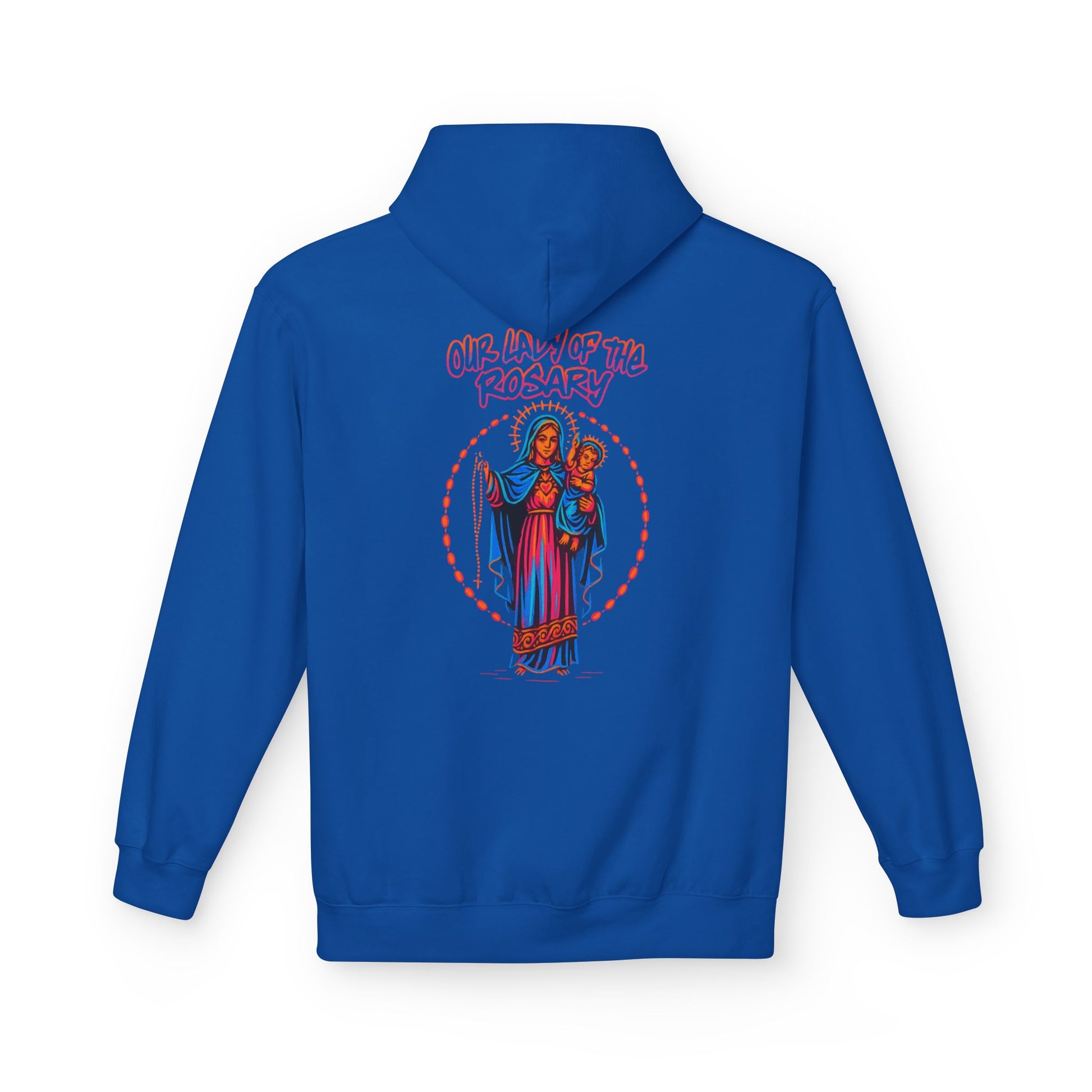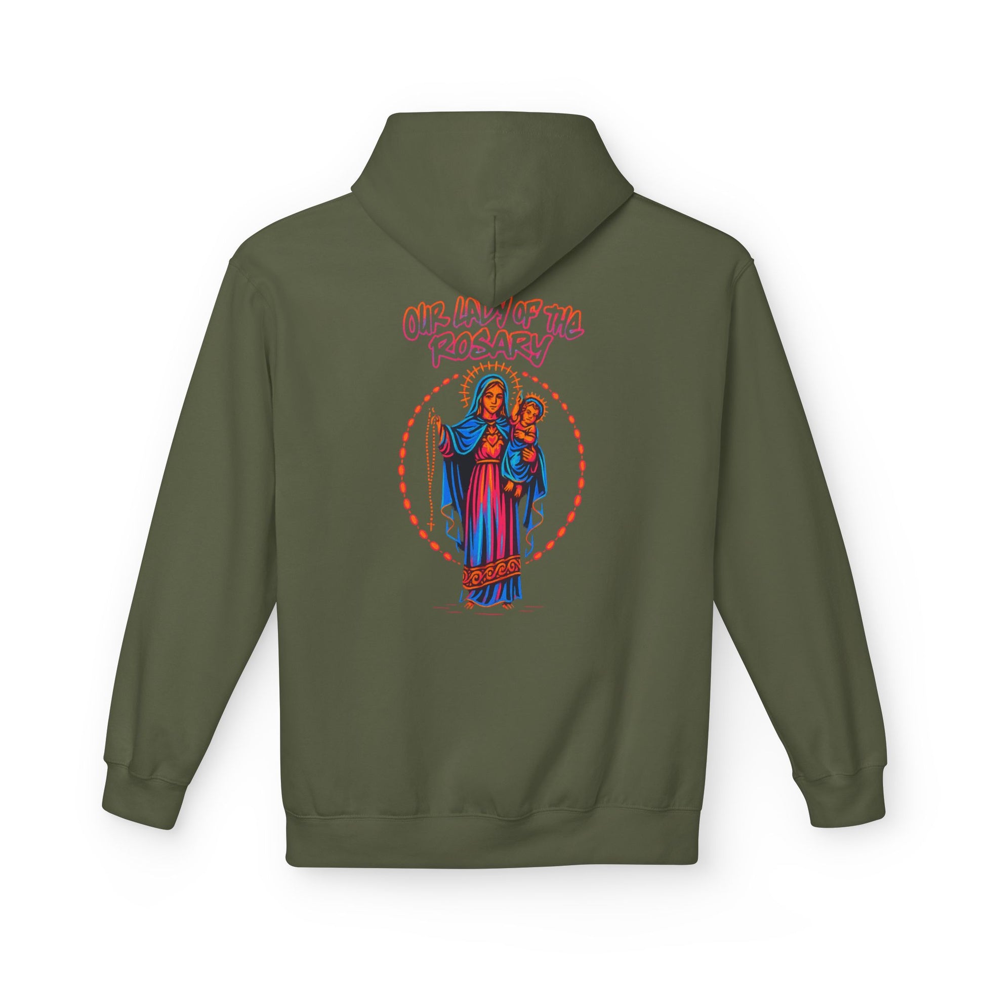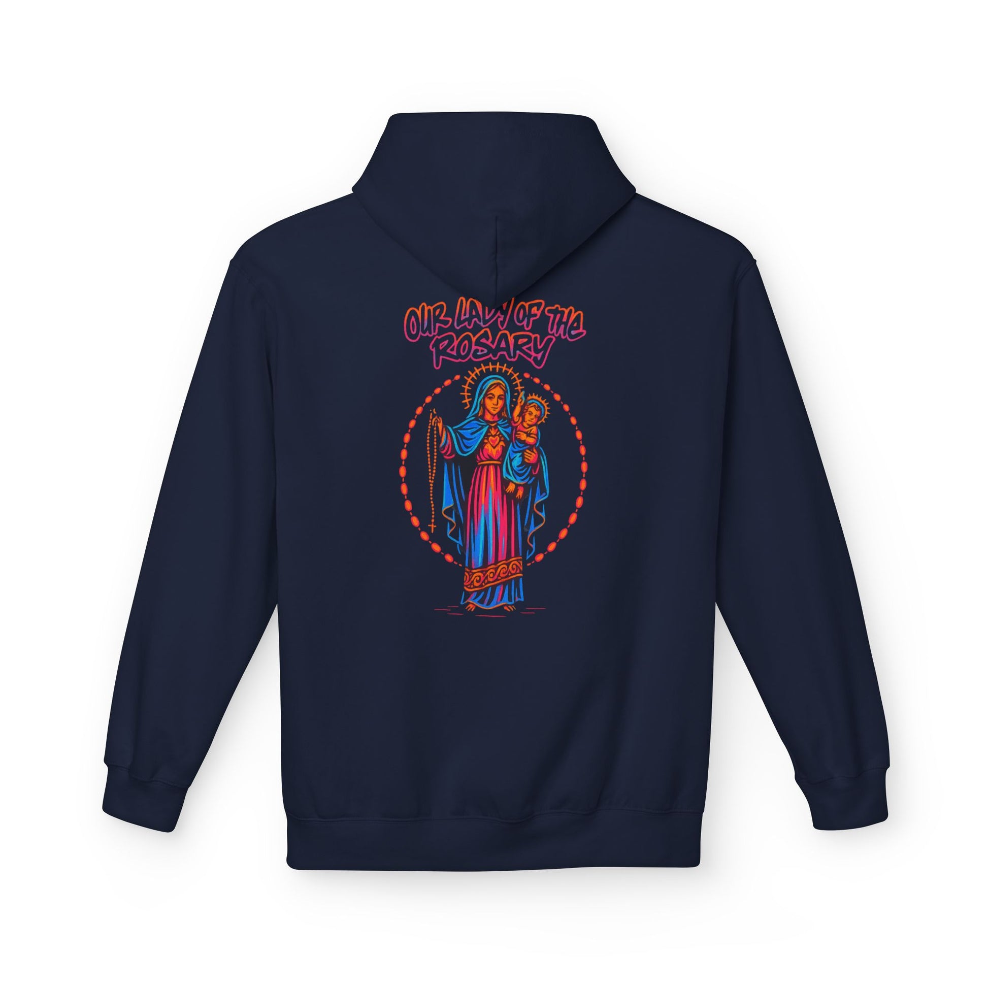 Our Lady of the Rosary Hoodie – Neon Catholic Streetwear – Christian Faith Graphic Sweatshirt by Saints Hood