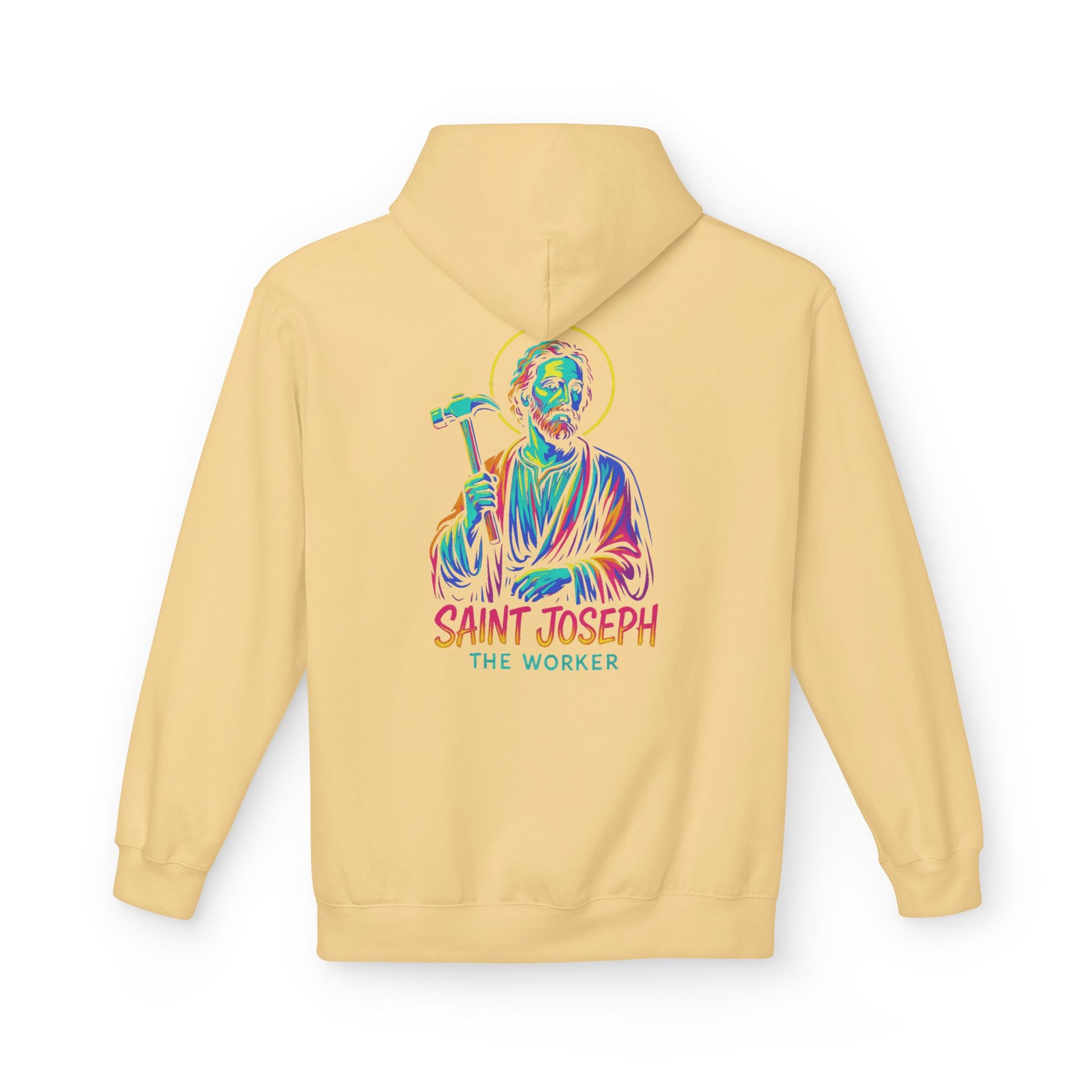 Saint Joseph the Worker Hoodie – Neon Catholic Saint Sweatshirt – Christian Streetwear by Saints Hood