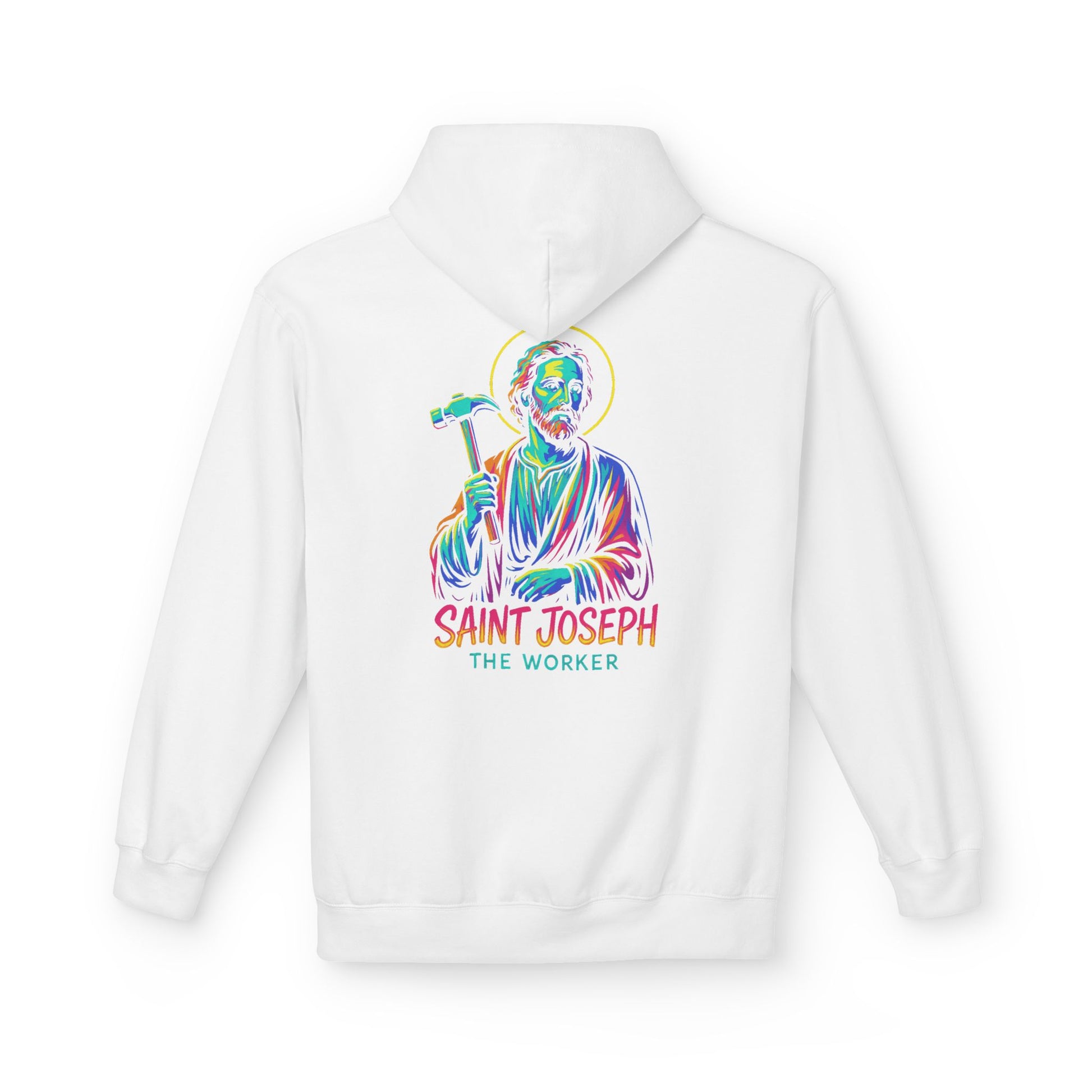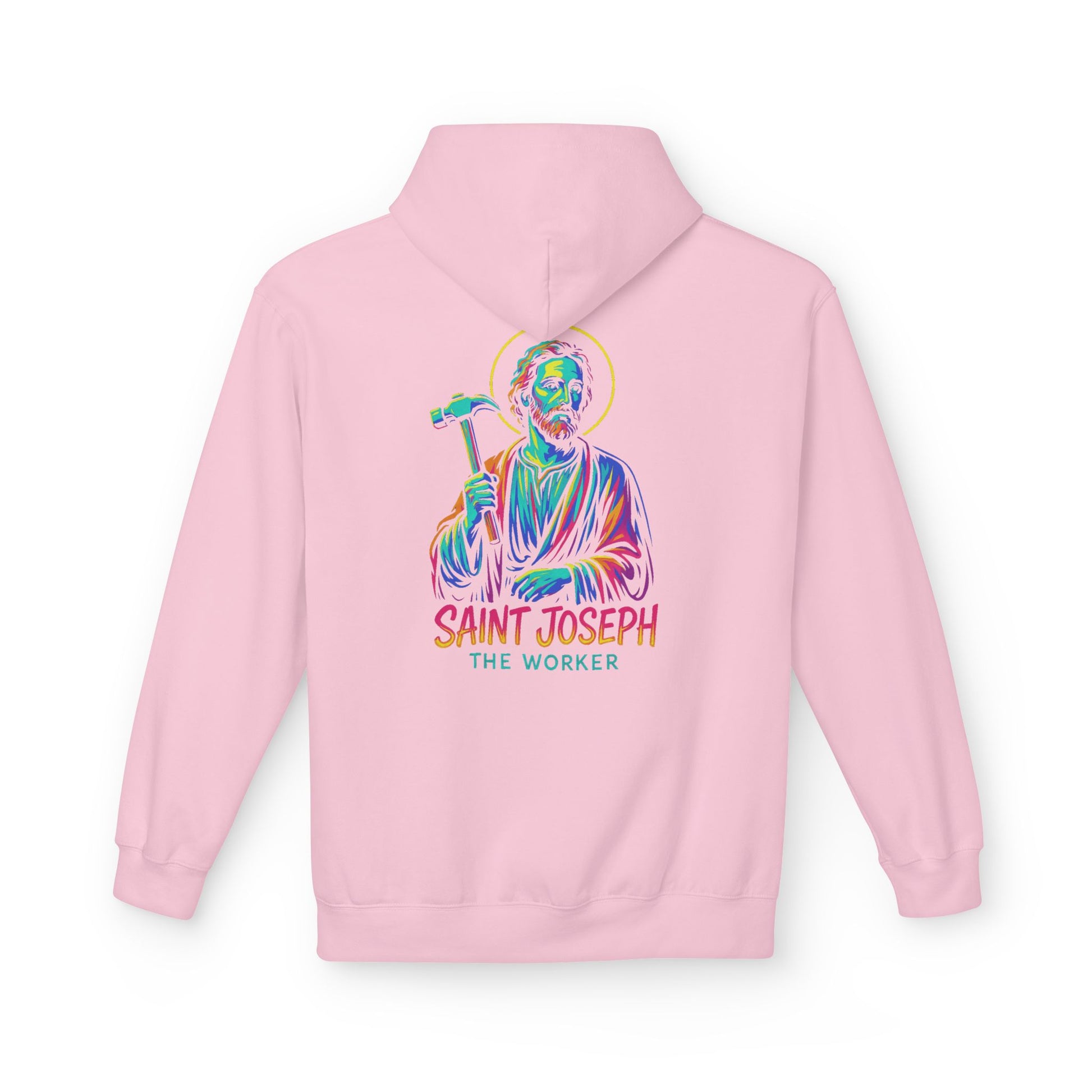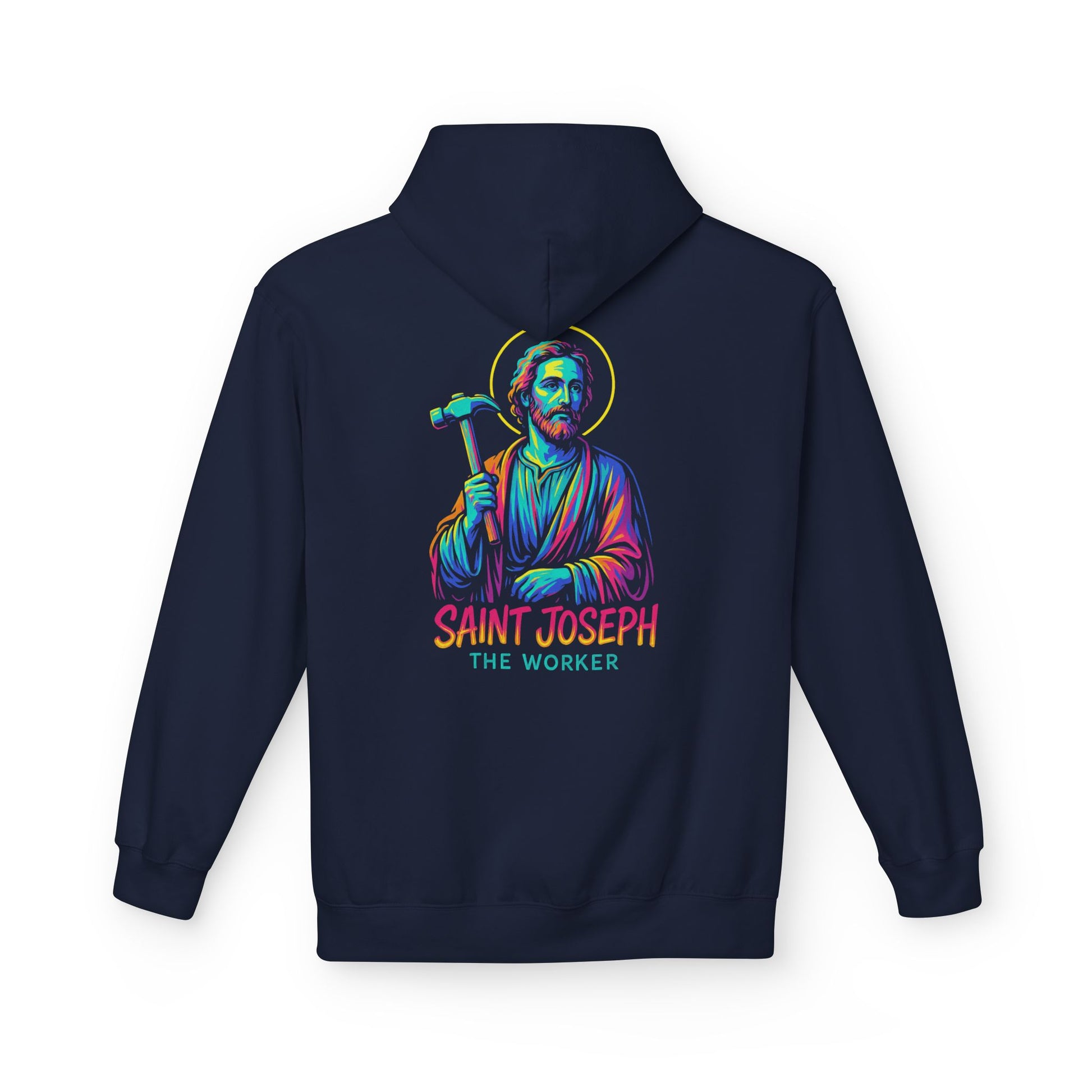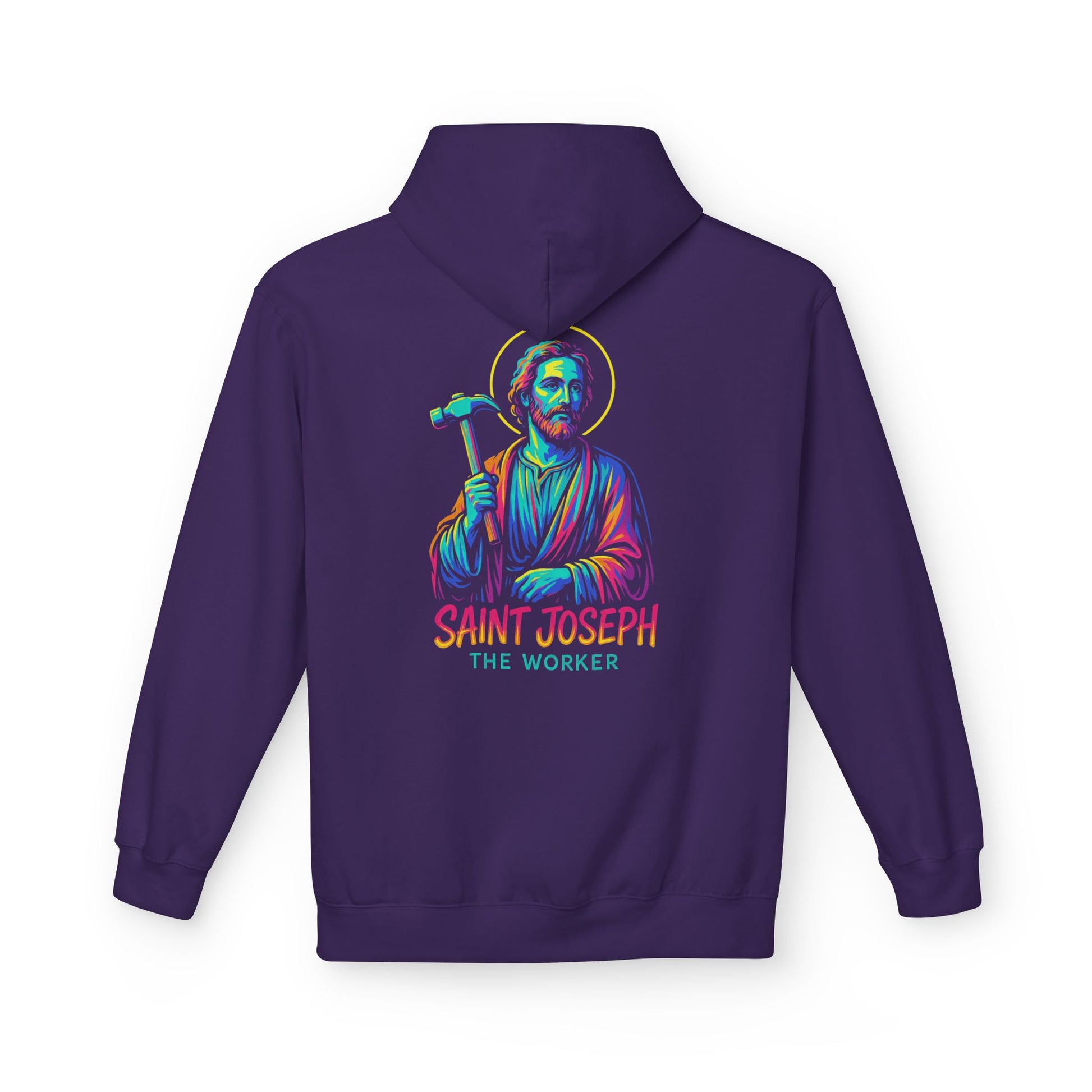 Saint Joseph the Worker Hoodie | Catholic Saint Graphic Sweatshirt | Neon Christian Streetwear | Religious Gift for Men & Women