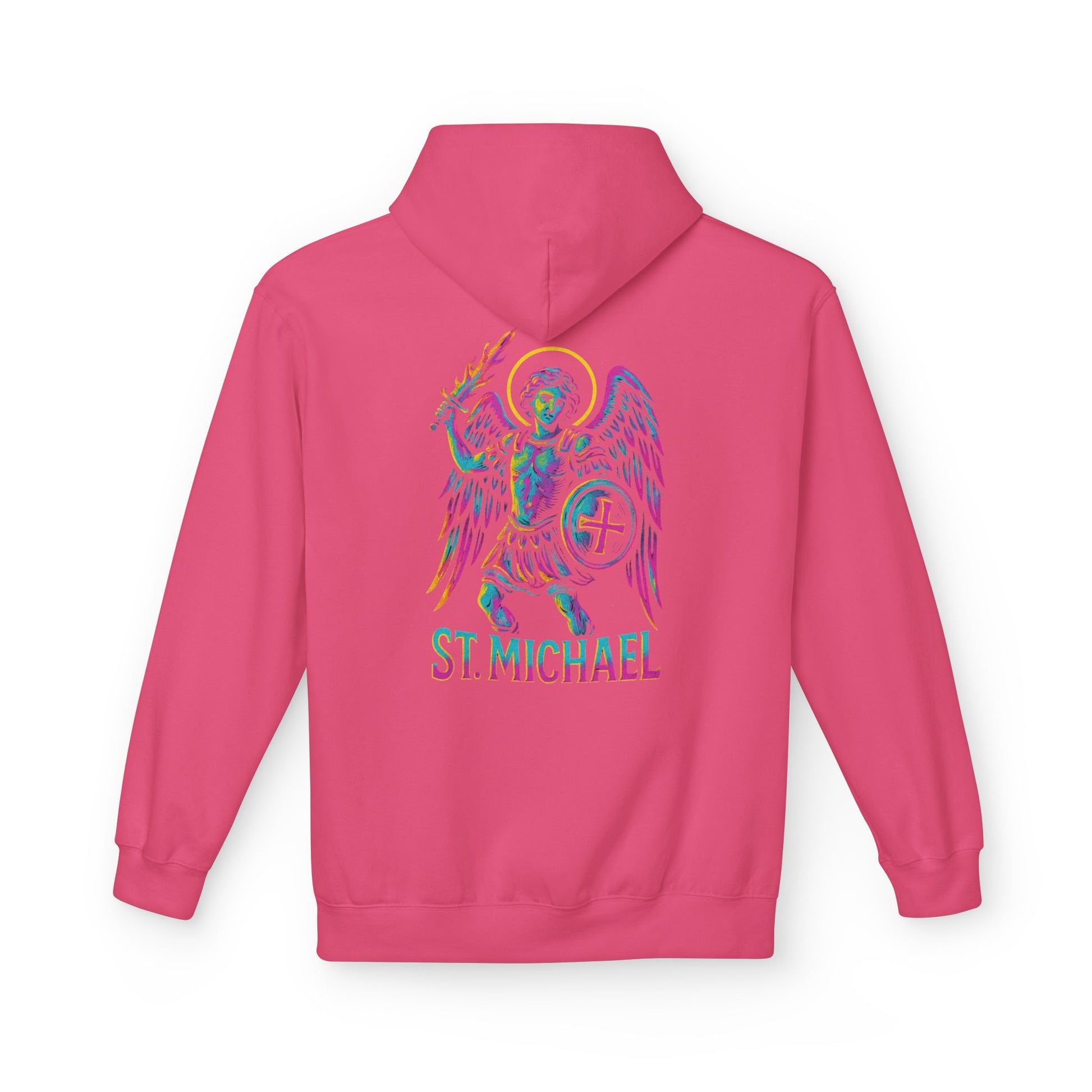 The St. Michael the Archangel Hoodie is part of the Saints Hood Collection, where every piece tells the story of a saint through bold, neon-infused streetwear.